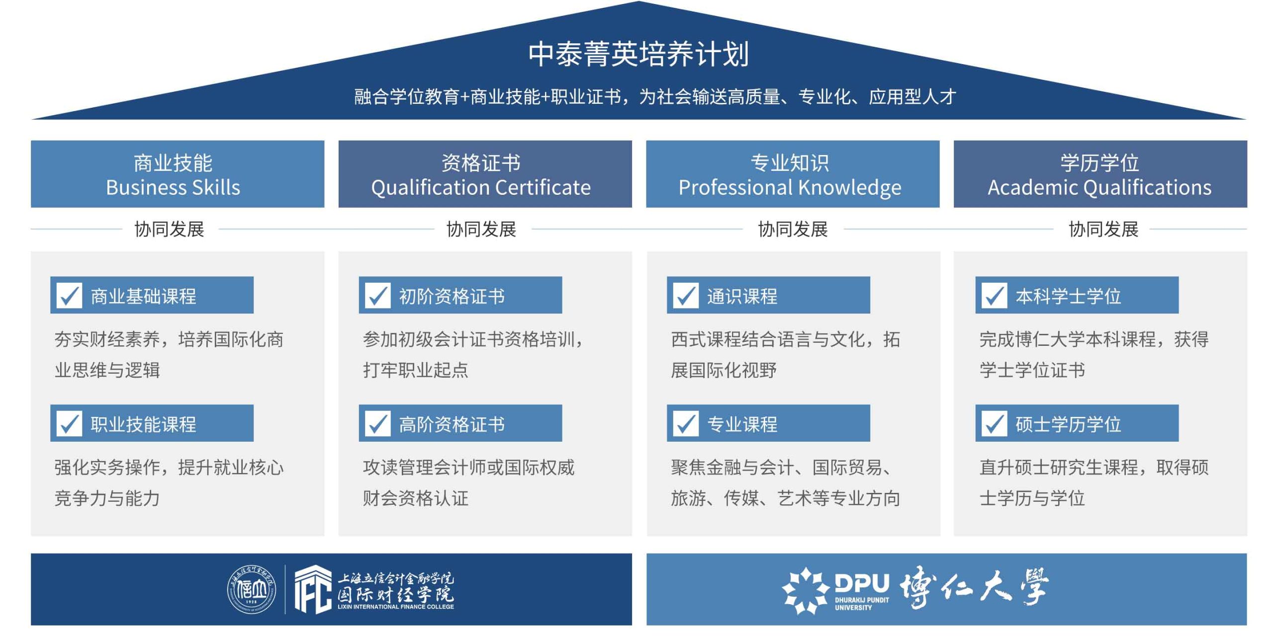学习地点: 上海立信会计金融学院校区,后续赴泰学习。且在立信学习课程可免修博仁大学部分课程和学费!