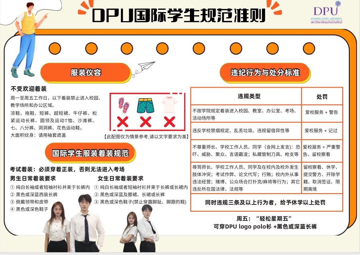 为维护良好的校园秩序与学习环境,博仁大学对国际学生的日常行为与着装作出了明确规范,主要内容如下: