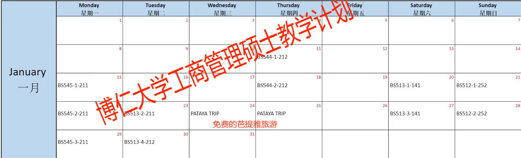 在泰国高校体系中,有一种叫 “集中授课(Block Course)”本质仍然是全日制注册 + 学分制培养,只是把课程时间做了“集中安排”,不是减少课程。而中国的寒暑假恰好在泰国正常学制内。如图(博仁大学硕士的课表)